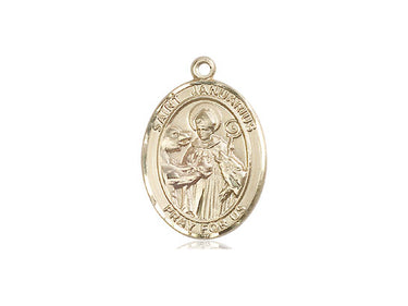 Embrace your faith with timeless elegance. This exquisite 14KT Gold Saint Januarius Pendant, measuring 3/4 x 1/2, is meticulously handcrafted in the USA by Bliss, a renowned name in religious jewelry. The durable -inch 14KT Gold curb chain gracefully drapes with a secure lobster clasp for a comfortable, everyday wear. The Saint Januarius is a patron saint of blood banks.