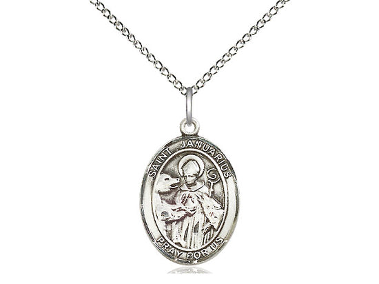 Sterling Silver St. Januarius Pendant Necklace 3/4 x 1/2 - 18 Inch Chain