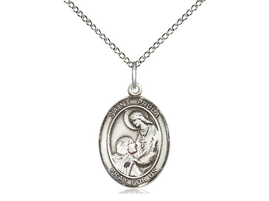 Sterling Silver St. Paula Pendant Necklace 3/4 x 1/2 - 18 Inch Chain