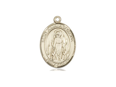 Embrace your faith with timeless elegance. This exquisite 14KT Gold Saint Juliana Pendant, measuring 3/4 x 1/2, is meticulously handcrafted in the USA by Bliss, a renowned name in religious jewelry. The durable -inch 14KT Gold curb chain gracefully drapes with a secure lobster clasp for a comfortable, everyday wear.