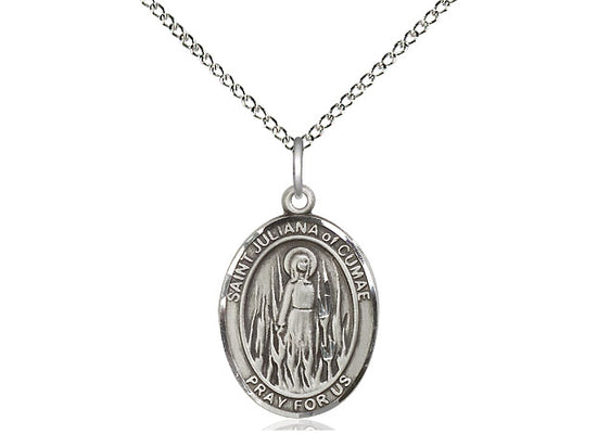 Sterling Silver St. Juliana Pendant Necklace 3/4 x 1/2 - 18 Inch Chain