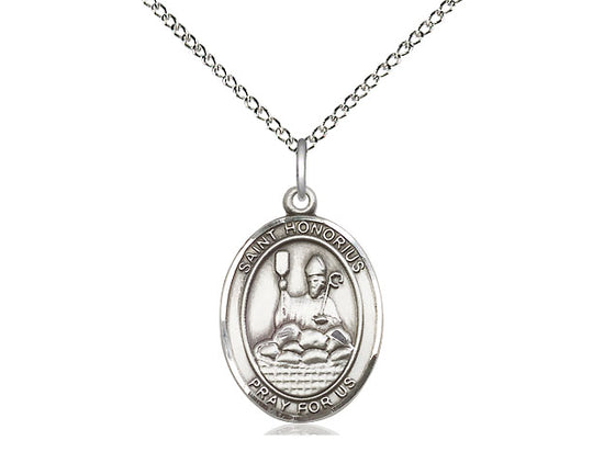 Sterling Silver St. Honorius Pendant Necklace 3/4 x 1/2 - 18 Inch Chain