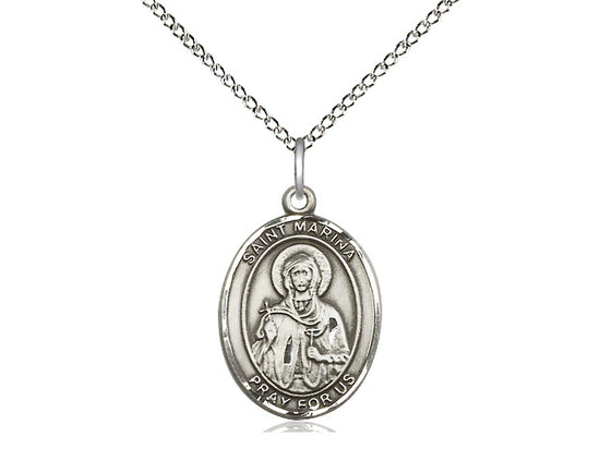 Sterling Silver St. Marina Pendant Necklace 3/4 x 1/2 - 18 Inch Chain