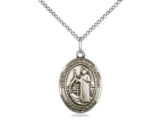 Sterling Silver St. Raymond of Penafort Pendant Necklace 3/4 x 1/2 - 18 Inch Chain