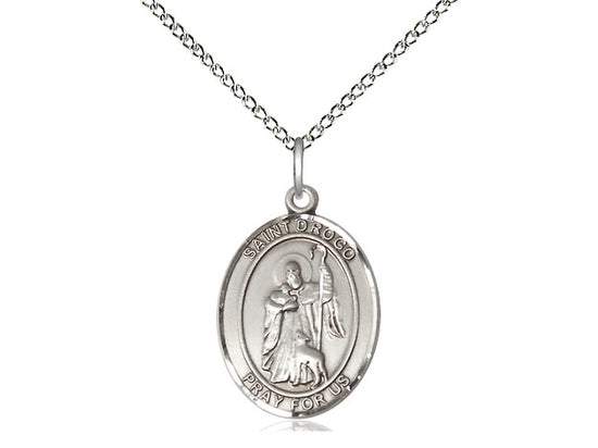 Sterling Silver St. Drogo Pendant Necklace 3/4 x 1/2 - 18 Inch Chain