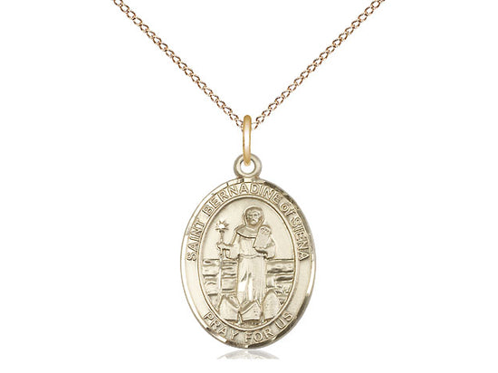 14kt Gold Filled St. Bernadine Of Sienna Pendant Necklace 3/4 x 1/2 - 18 Inch Chain