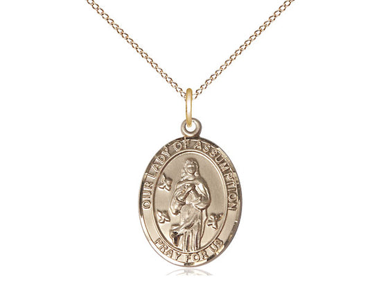 14kt Gold Filled Our Lady Of Assumption Pendant Necklace 3/4 x 1/2 - 18 Inch Chain