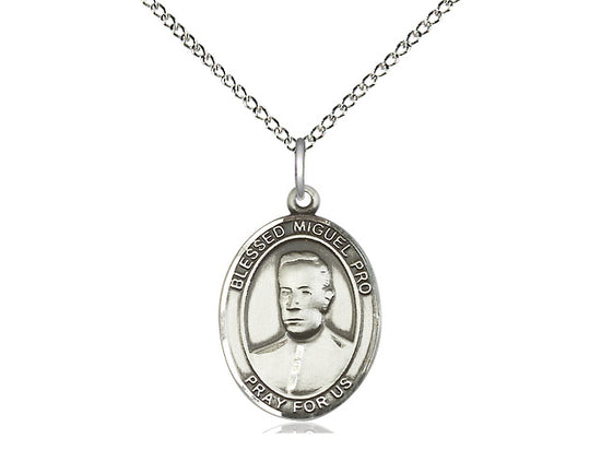 Sterling Silver Blessed Miguel Pro Pendant Necklace 3/4 x 1/2 - 18 Inch Chain