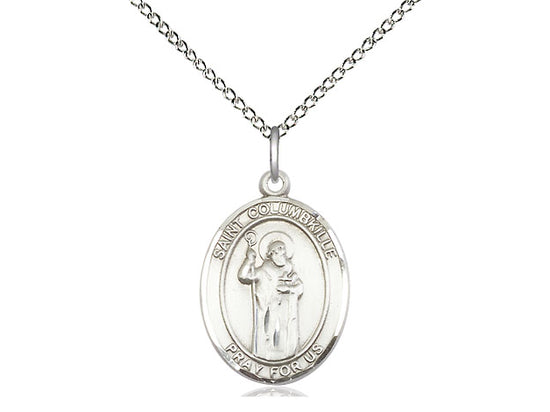 Sterling Silver St. Columbkille Pendant Necklace 3/4 x 1/2 - 18 Inch Chain