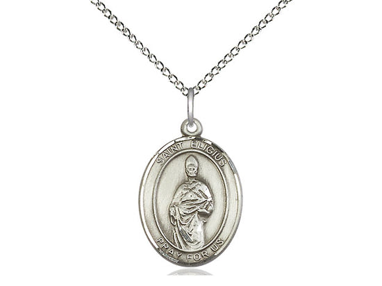 Sterling Silver St. Eligius Pendant Necklace 3/4 x 1/2 - 18 Inch Chain
