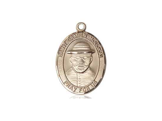 14kt Solid Gold St. Damien of Molokai Medal 3/4 x 1/2