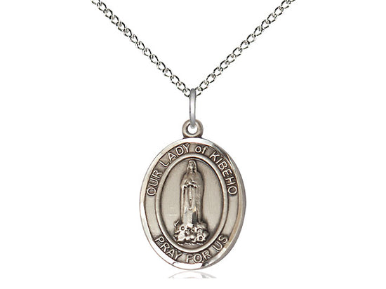 Sterling Silver Our Lady of Kibeho Pendant Necklace 3/4 x 1/2 - 18 Inch Chain