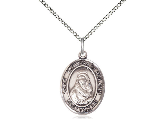 Sterling Silver St. Jadwiga of Poland Pendant Necklace 3/4 x 1/2 - 18 Inch Chain