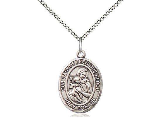 Sterling Silver Our Lady of the Precious Blood Pendant Necklace 3/4 x 1/2 - 18 Inch Chain