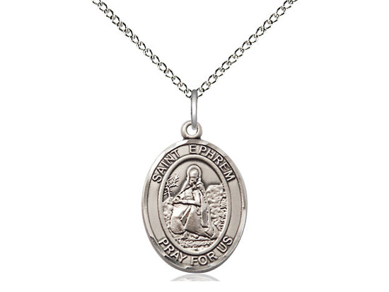 Sterling Silver St. Ephrem Pendant Necklace 3/4 x 1/2 - 18 Inch Chain