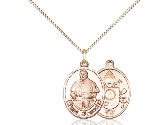 14kt Gold Filled Pope Francis Oval Pendant Necklace 3/4 x 1/2 - 18 Inch Chain