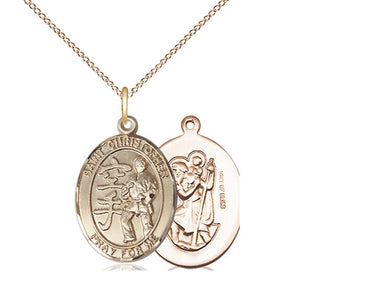 14kt Gold Filled St Christopher / Karate Pendant Necklace 3/4 x 1/2 - 18 Inch Chain