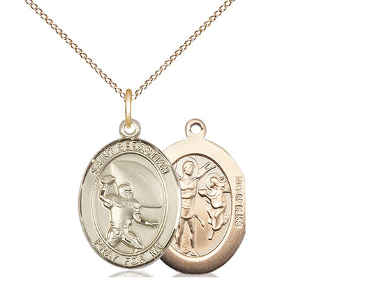 14kt Gold Filled St. Sebastian / Football Pendant Necklace 3/4 x 1/2 - 18 Inch Chain