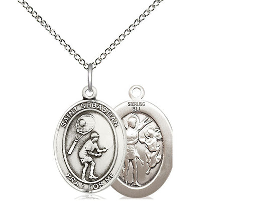 Sterling Silver St. Sebastian / Tennis Pendant Necklace 3/4 x 1/2 - 18 Inch Chain