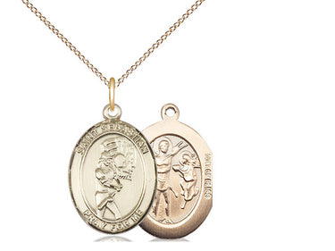 14kt Gold Filled St. Sebastian / Softball Pendant Necklace 3/4 x 1/2 - 18 Inch Chain
