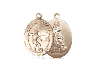 14kt Solid Gold Guardian Angel / Soccer Medal 3/4 x 1/2