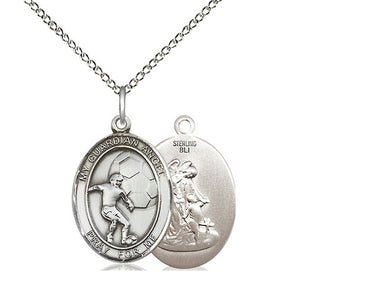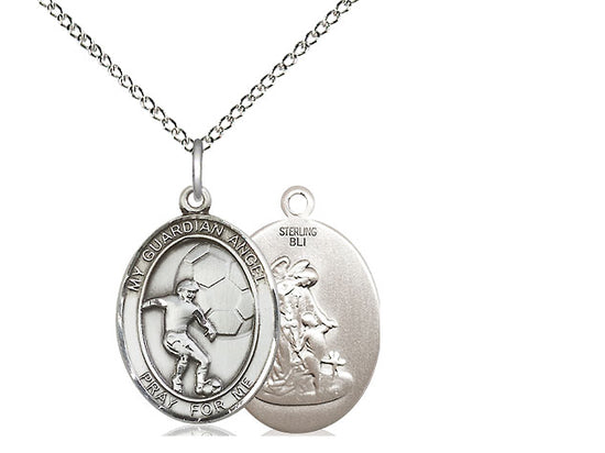 Sterling Silver Guardian Angel / Soccer Pendant Necklace 3/4 x 1/2 - 18 Inch Chain
