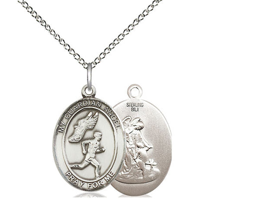 Sterling Silver Guardian Angel/Track&Field-Men Pendant Necklace 3/4 x 1/2 - 18 Inch Chain