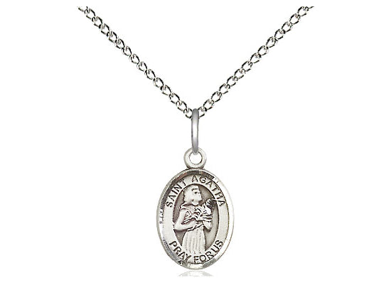 Small Sterling Silver St. Agatha Pendant Necklace 1/2 x 1/4 - 18 Inch Chain