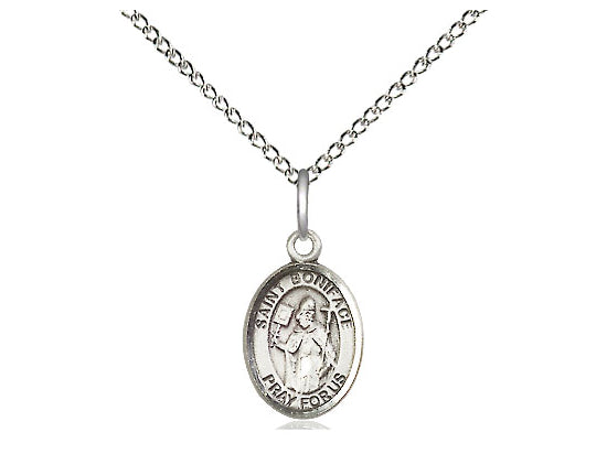 Small Sterling Silver St. Boniface Pendant Necklace 1/2 x 1/4 - 18 Inch Chain