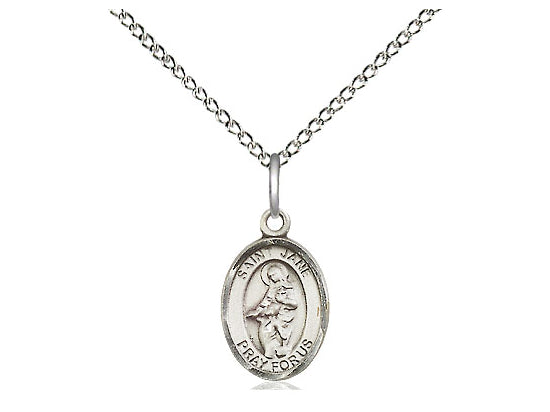 Small Sterling Silver St. Jane of Valois Pendant Necklace 1/2 x 1/4 - 18 Inch Chain