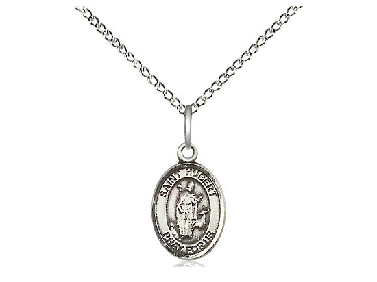 Small Sterling Silver St. Hubert of Liege Pendant Necklace 1/2 x 1/4 - 18 Inch Chain