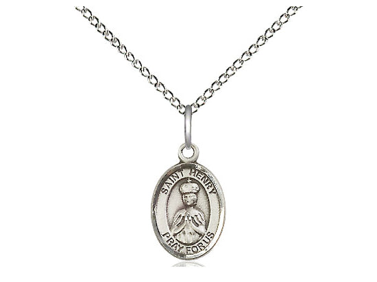 Small Sterling Silver St. Henry II Pendant Necklace 1/2 x 1/4 - 18 Inch Chain