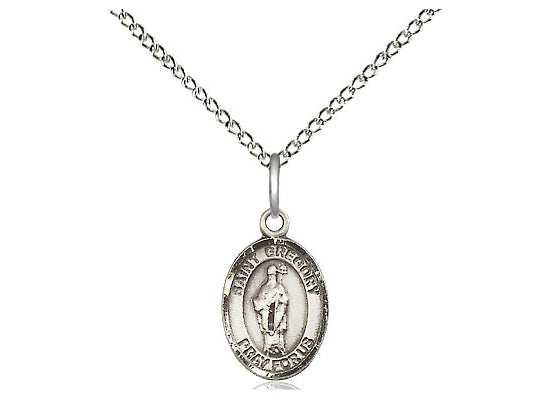 Small Sterling Silver St. Gregory the Great Pendant Necklace 1/2 x 1/4 - 18 Inch Chain