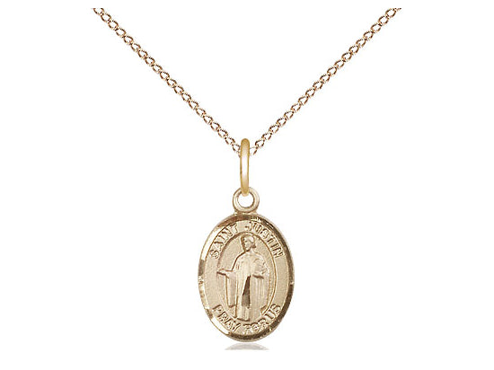 Small 14kt Gold Filled St. Justin Pendant Necklace 1/2 x 1/4 - 18 Inch Chain