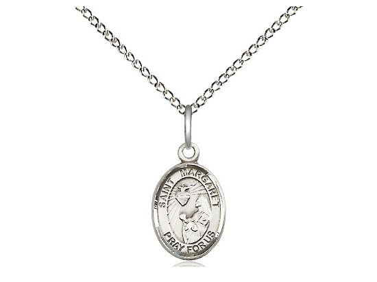 Small Sterling Silver St. Margaret Mary Alacoque Pendant Necklace 1/2 x 1/4 - 18 Inch Chain