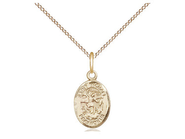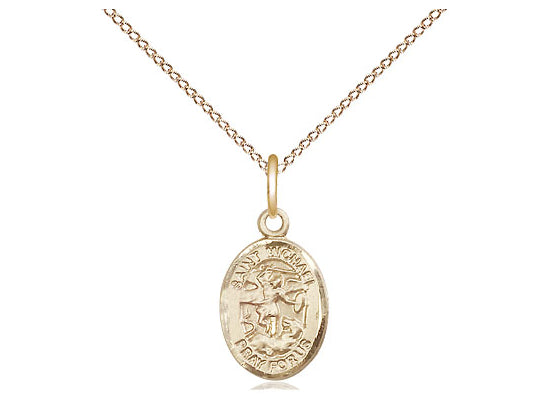 Small 14kt Gold Filled St. Michael the Archangel Pendant Necklace 1/2 x 1/4 - 18 Inch Chain