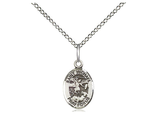 Small Sterling Silver St. Michael the Archangel Pendant Necklace 1/2 x 1/4 - 18 Inch Chain