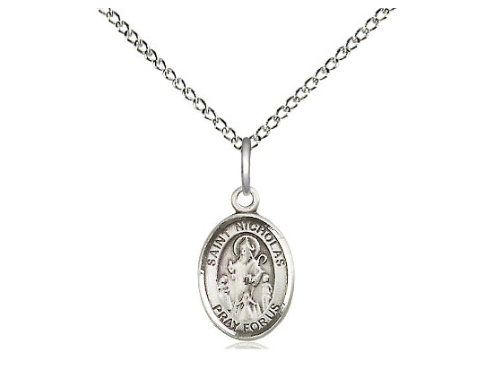 Small Sterling Silver St. Nicholas Pendant Necklace 1/2 x 1/4 - 18 Inch Chain