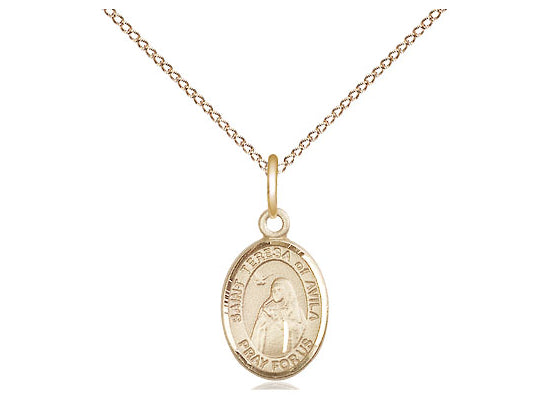 Small 14kt Gold Filled St. Teresa of Avila Pendant Necklace 1/2 x 1/4 - 18 Inch Chain