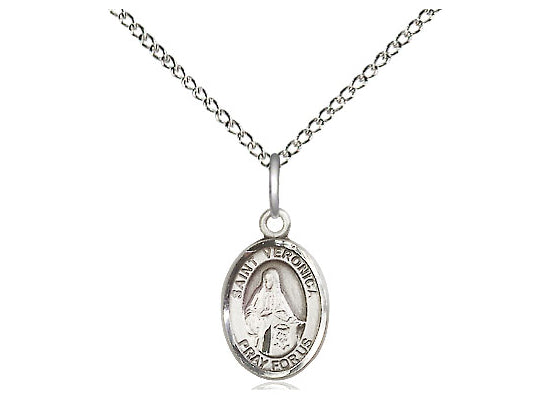 Small Sterling Silver St. Veronica Pendant Necklace 1/2 x 1/4 - 18 Inch Chain