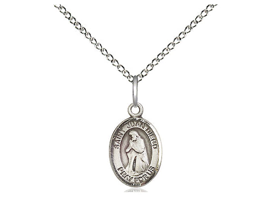 Small Sterling Silver St. Juan Diego Pendant Necklace 1/2 x 1/4 - 18 Inch Chain