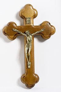 7. 5" x 4. 5" wooden wall crucifix. Golden tone corpus.