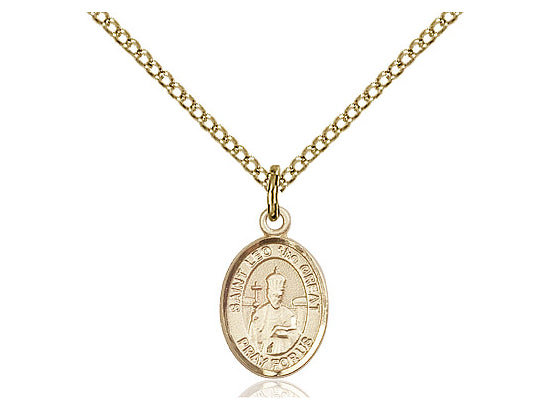 Small 14kt Gold Filled St. Leo the Great Pendant Necklace 1/2 x 1/4 - 18 Inch Chain