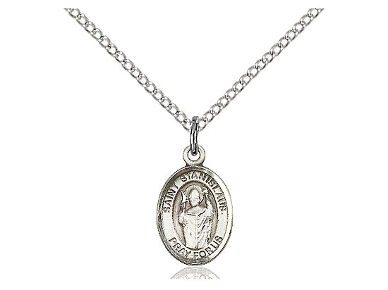 Small Sterling Silver St. Stanislaus Pendant Necklace 1/2 x 1/4 - 18 Inch Chain