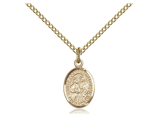 Small 14kt Gold Filled Sts. Cosmas & Damian Pendant Necklace 1/2 x 1/4 - 18 Inch Chain