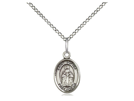Small Sterling Silver St. Sophia Pendant Necklace 1/2 x 1/4 - 18 Inch Chain
