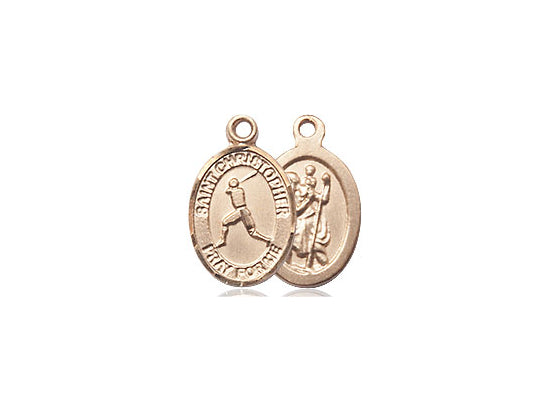 Small 14kt Solid Gold St. Christopher/Baseball Medal 1/2 x 1/4