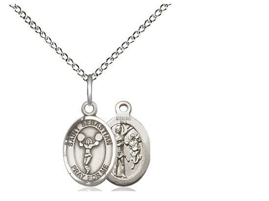 Embrace your faith with timeless elegance. This exquisite Sterling Silver Saint Sebastian/Cheerleading Necklace, measuring 1/2 x 1/4, is meticulously handcrafted in the USA by Bliss, a renowned name in religious jewelry. The durable 18-inch Sterling Silver curb chain gracefully drapes with a secure lobster clasp for a comfortable, everyday wear. The is a patron saint of athletes, soldiers.