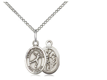 Small Sterling Silver St. Sebastian Pendant Necklace 1/2 x 1/4 - 18 Inch Chain
