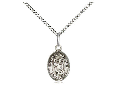Small Sterling Silver St. Vincent Ferrer Pendant Necklace 1/2 x 1/4 - 18 Inch Chain